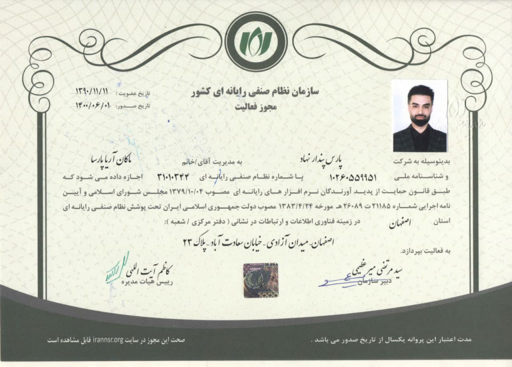مجوز از سازمان نظام صنفی رایانه ای کشور