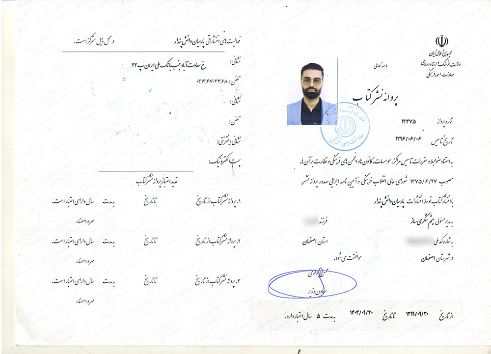 هولدینگ پارس پندار نهاد ،موفق به اخذ پروانه نشر کتاب به شماره پروانه ۱۳۴۷۵ مورخ ۱۳۹۶/۰۶/۰۶ و با عنوان رسمی پارسیان دانش پندار از وزارت فرهنگ و ارشاد اسلامی شده است.